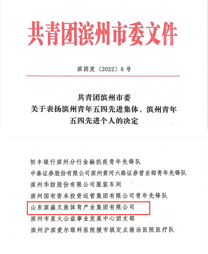 近日,濱州市慶祝中國共產主義青年團成立100周年大會召開,宣讀了《關于表揚濱州青年五四先進集體、濱州青年五四先進個人的決定》。其中,濱盛集團榮獲濱州市“五四”青年先鋒隊,激發了全體職工強烈的榮譽感和神圣的使命感。在今后的工作中,濱盛集團將戒驕戒躁,珍惜榮譽,發揚求真務實、紀律嚴明的優良作風,提高工作效率,加強崗位技能培訓,積極開展系列主題教育實踐活動,為我市文旅體事業的發展做出更大的貢獻。