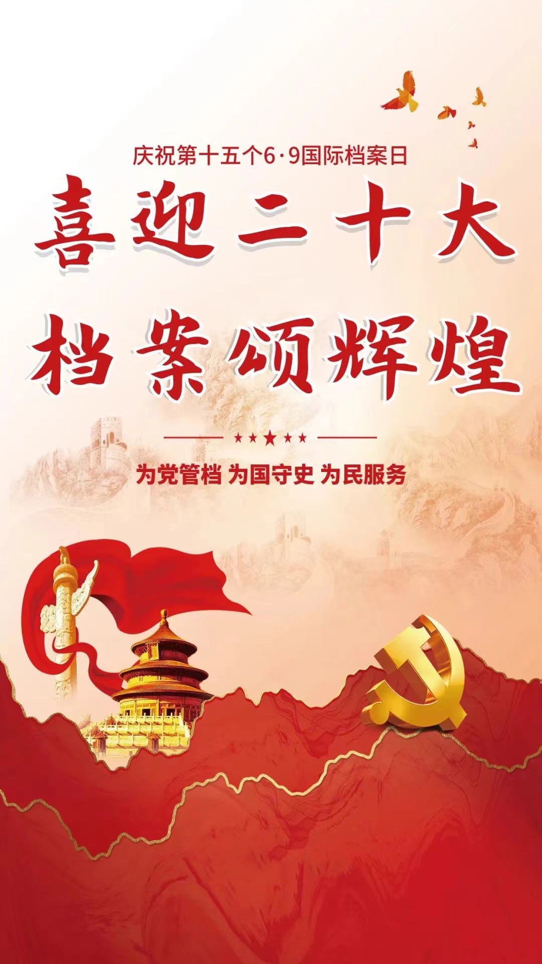 為認(rèn)真貫徹落實習(xí)近平總書記關(guān)于做好新時代檔案工作的重要批示精神,山東濱盛文旅體育產(chǎn)業(yè)集團有限公司開展“喜迎二十大·檔案頌輝煌”為主題的國際檔案日系列宣傳活動,營造集團喜迎二十大的良好氛圍。