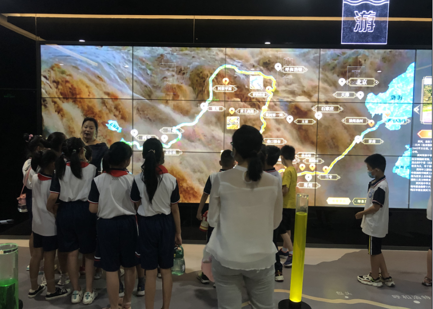 黃河樓,每一層都有不同的主題,少先隊員們跟隨講解員依次參觀了全景黃河、溯源黃河、智者智城、歷史黃河、安瀾黃河、生態(tài)黃河、幸福黃河、藝術(shù)黃河等11個不同的場館。