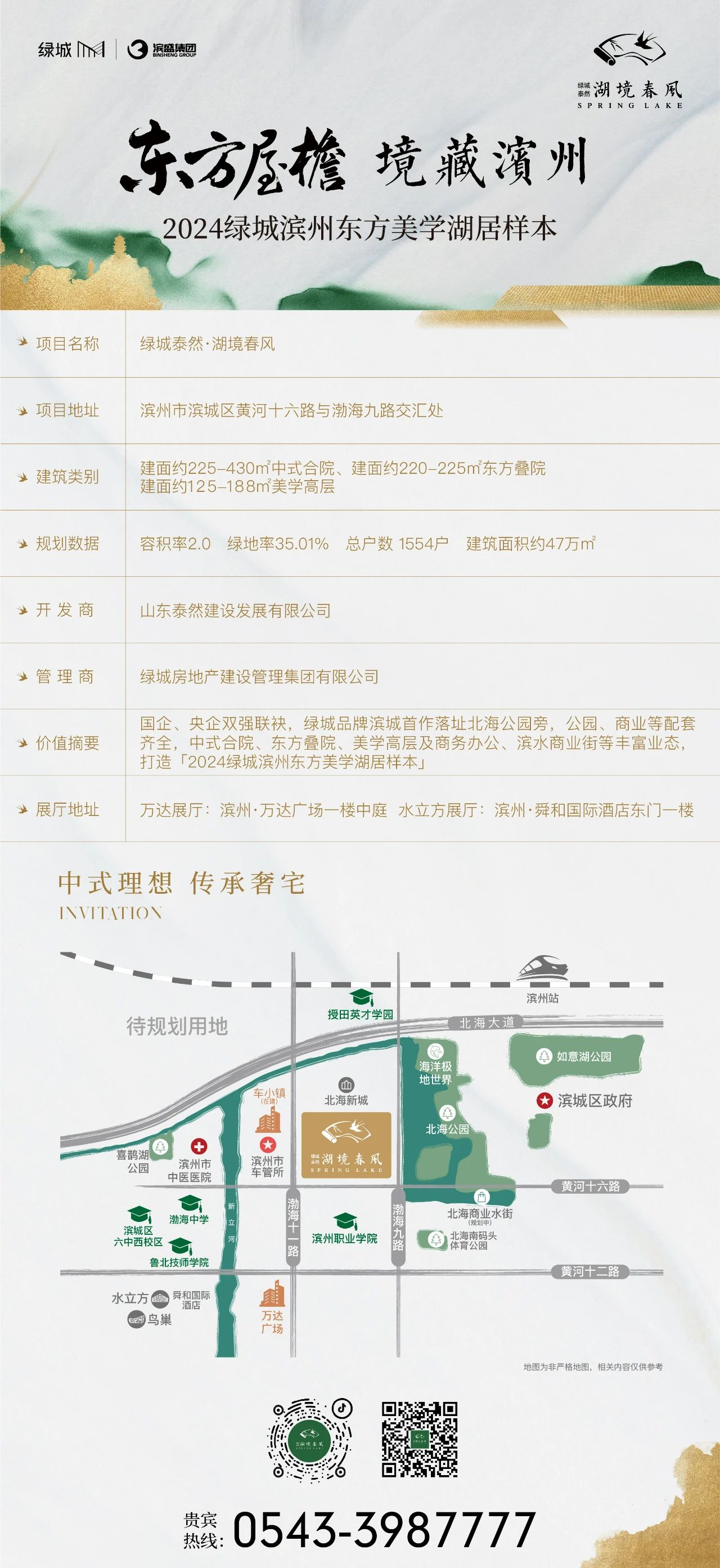 本宣傳資料所有文字、數(shù)據(jù)、圖片及所標(biāo)尺寸等僅為要約邀請(qǐng),不作為要約或承諾,相關(guān)內(nèi)容不排除因政府相關(guān)規(guī)劃、規(guī)定、出賣人分期規(guī)劃及其他原因而發(fā)生變化,一切有關(guān)本項(xiàng)目及房屋的具體信息及買賣雙方權(quán)利義務(wù)均以書面合同及政府最終審批文件為準(zhǔn)。項(xiàng)目學(xué)區(qū)及周邊學(xué)校的招生政策等相關(guān)情況,需由有購(gòu)房意向的業(yè)主自行向教育主管部門了解咨詢,最終以教育主管部門或相關(guān)政府部門答復(fù)意見或公開信息為準(zhǔn),開發(fā)商對(duì)此不作任何承諾,亦不承擔(dān)任何責(zé)任。本資料中的部分圖片/素材來(lái)源于網(wǎng)絡(luò),其著作權(quán)歸原作者所有,若原作者要求停止使用的,請(qǐng)及時(shí)與本公司聯(lián)系。本資料的發(fā)布時(shí)間為【2024】年【2】月,有效期【3】個(gè)月,本公司保留對(duì)本資料修改的權(quán)利且不再另行通知,敬請(qǐng)留意最新資料。本項(xiàng)目推廣案名為【綠城泰然·湖境春風(fēng)】,核準(zhǔn)地名為【湖境春風(fēng)】,開發(fā)商【山東泰然建設(shè)發(fā)展有限公司】,管理商【綠城房地產(chǎn)建設(shè)管理集團(tuán)有限公司】。