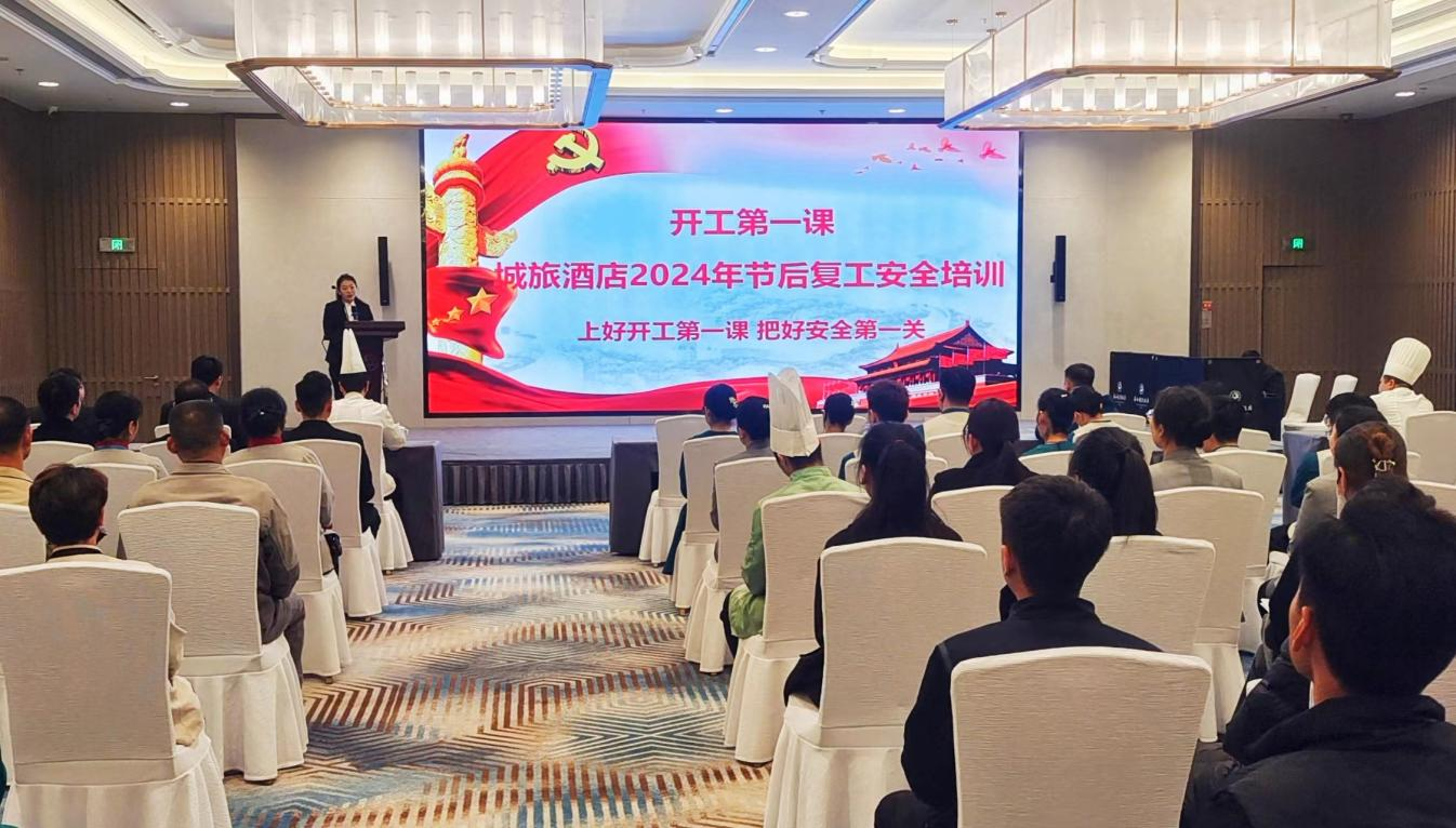2月18日下午,山東城旅酒店管理有限公司開展2024年節后復工安全培訓暨“開工第一課”專題會議。酒店全體干部職工共計120余人參加。