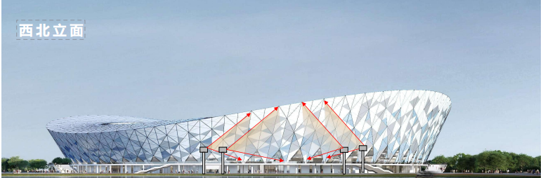 “鳥巢”西北立面投影位置