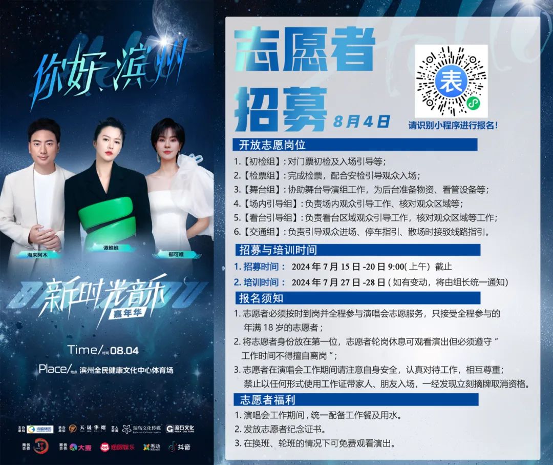 【志愿者招募】“你好·濱州”新時光音樂嘉年華志愿者報名入口!